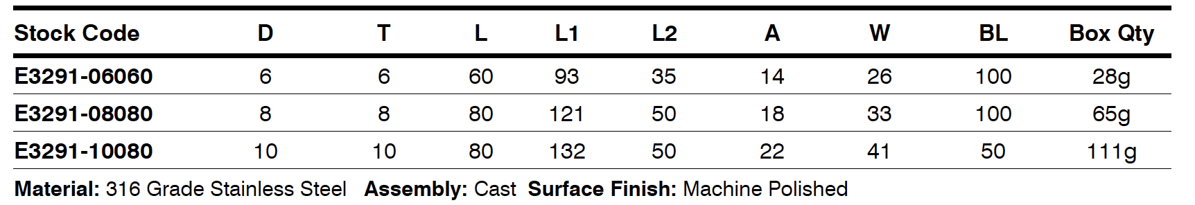 | Product Material | Stainless Steel 316 |
