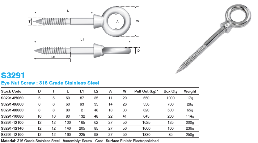 Description / Eye Nut Screw M8 x 80 Stainless Steel 316